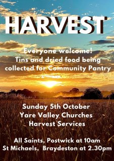 Please join us for our Harvest Services at either Postwick or Braydeston.