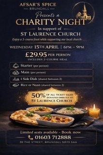 Afsar's Spice presents a charity night in support of St Laurence Church.